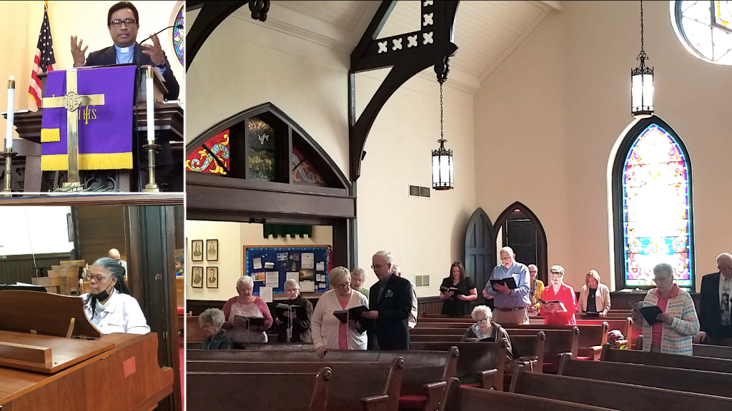 We praise the Lord. Our faith community worships every Sunday from 11:00 am. to noon m. in a spirit of fellowship and unity. Our liturgy follows the Lectionary and the Christian Calendar.